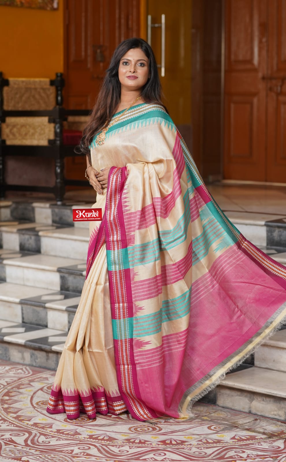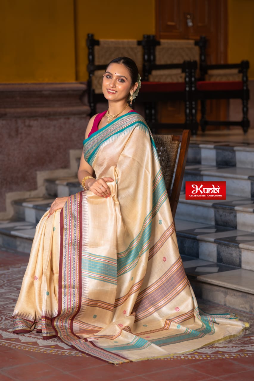 Tussar Vidarbha Saree With Temple Border