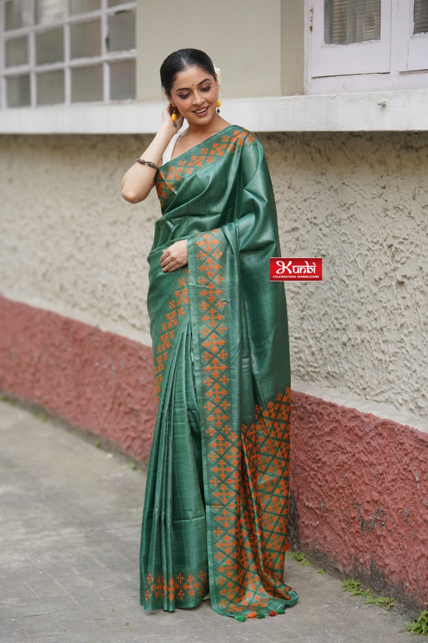 Vidarbha Tussar With Kathiyawadi Work