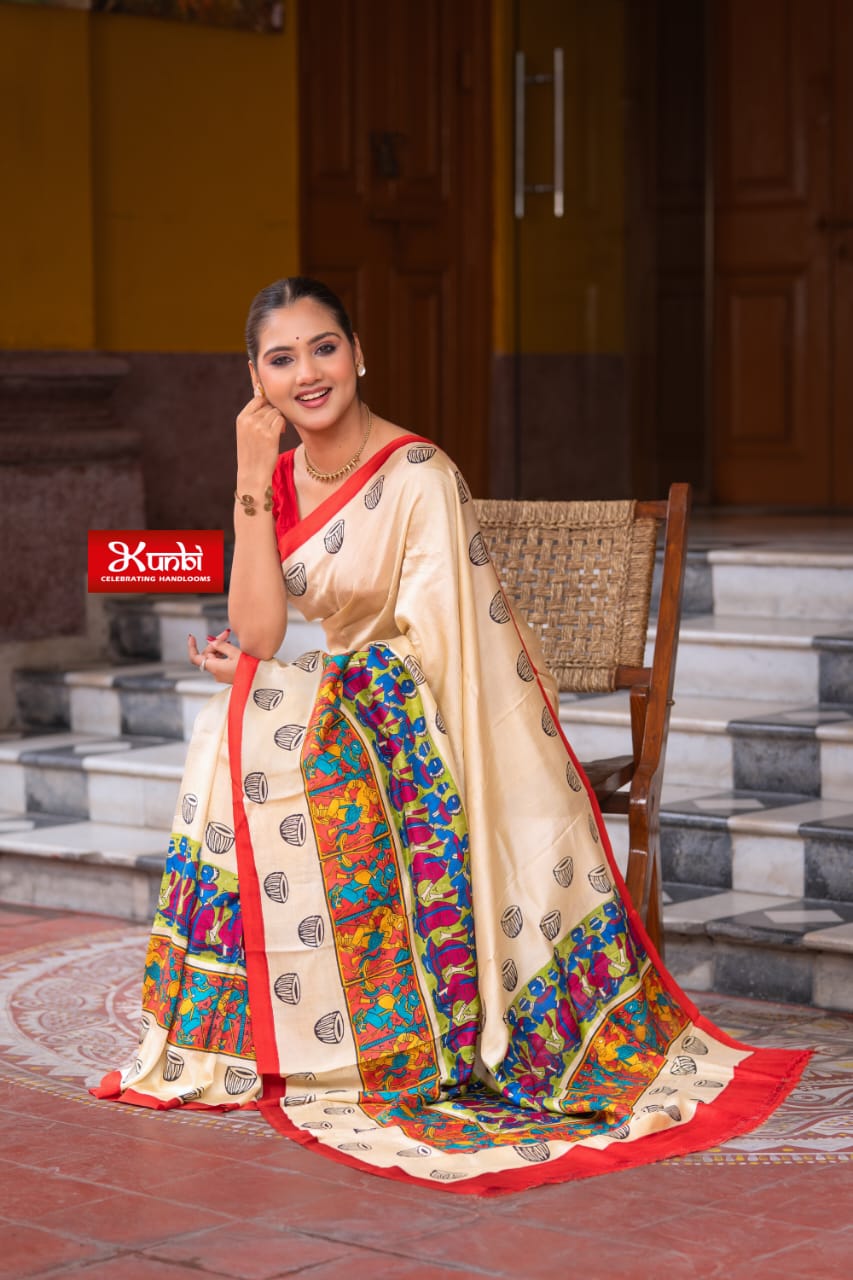 Bishnupuri silk with hand kalamkaari...
