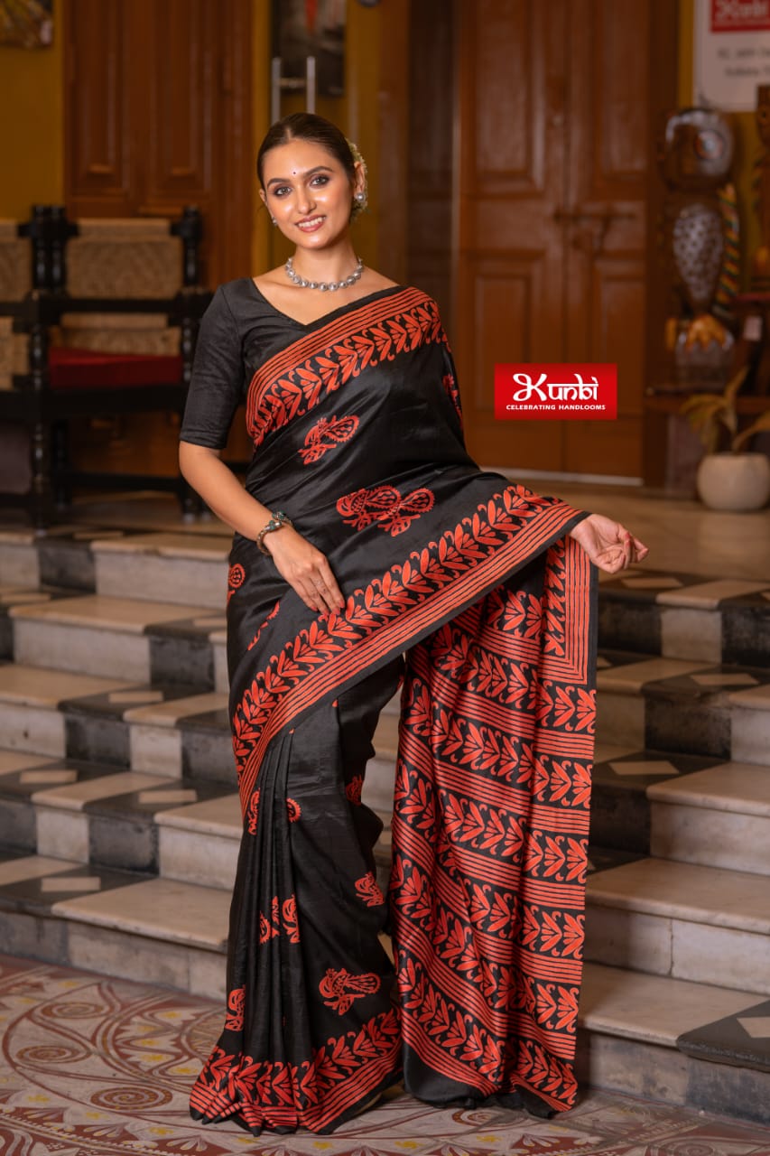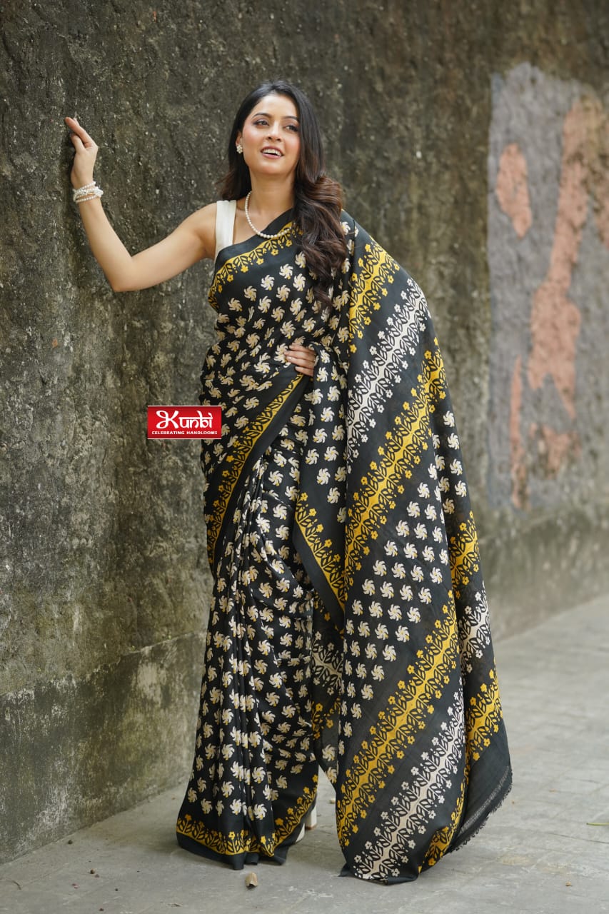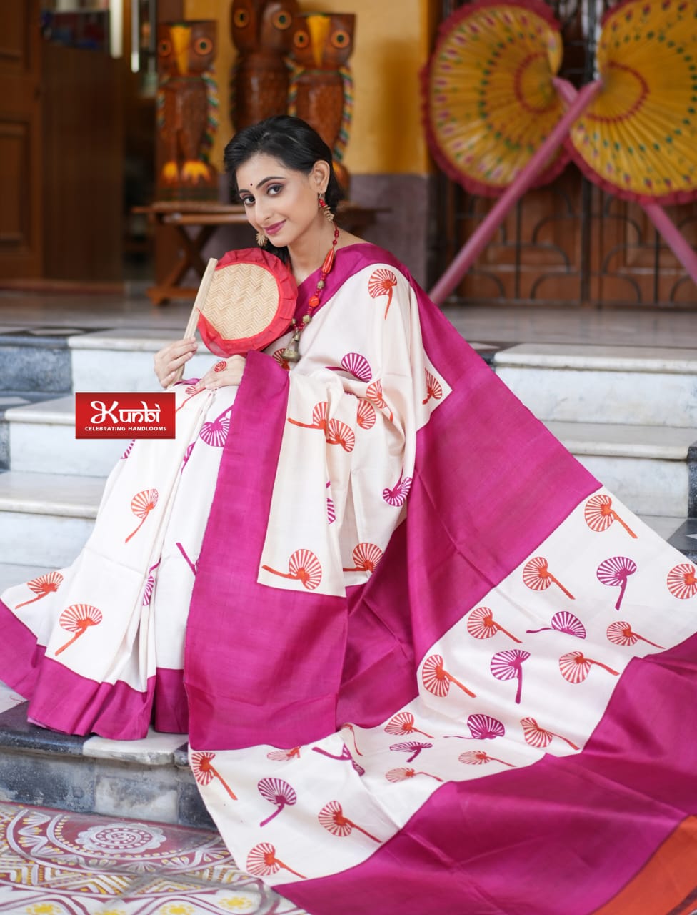 Tussar saree with block print