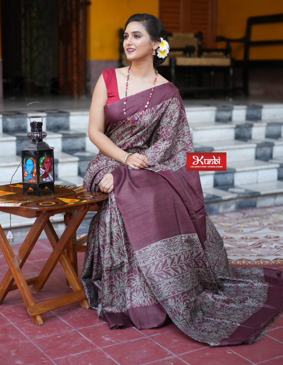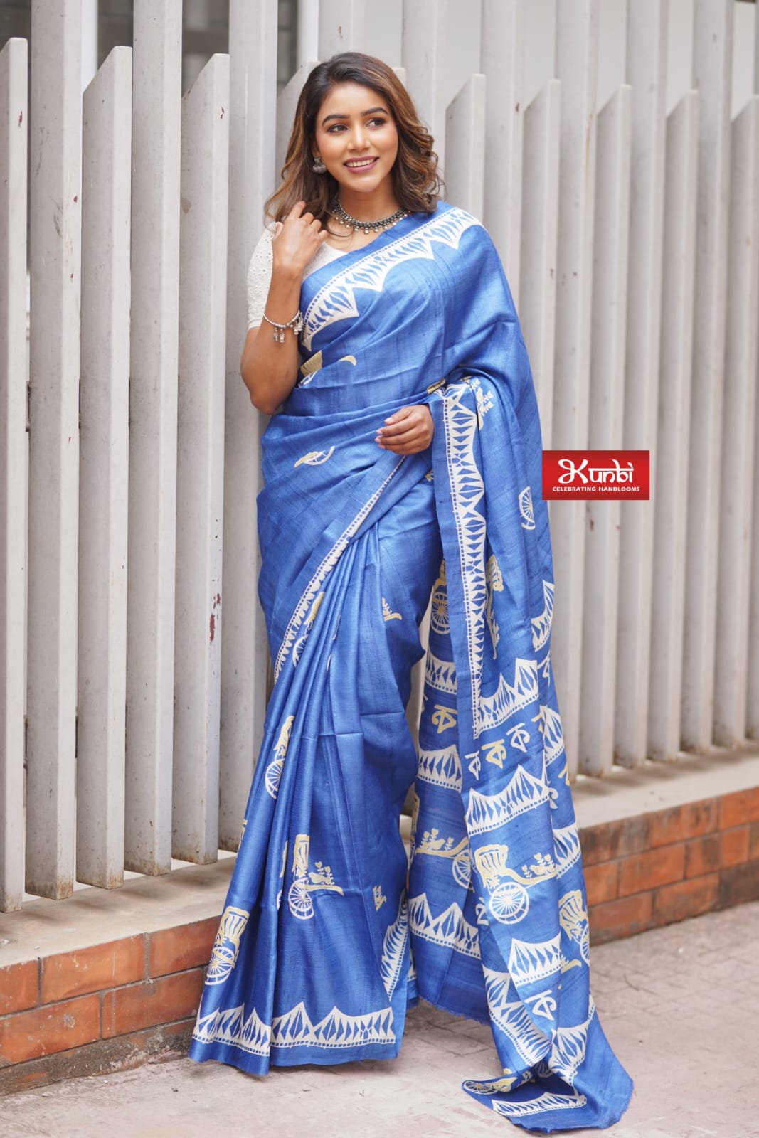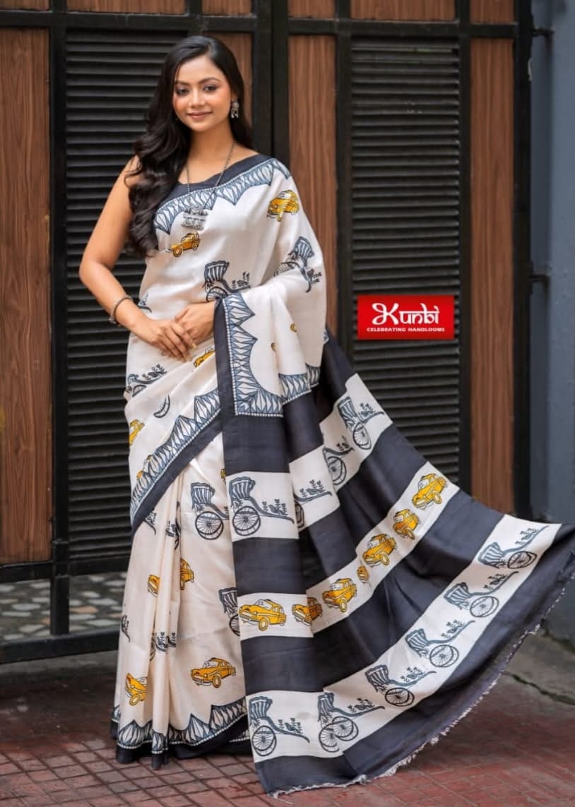 Tussar saree with block print