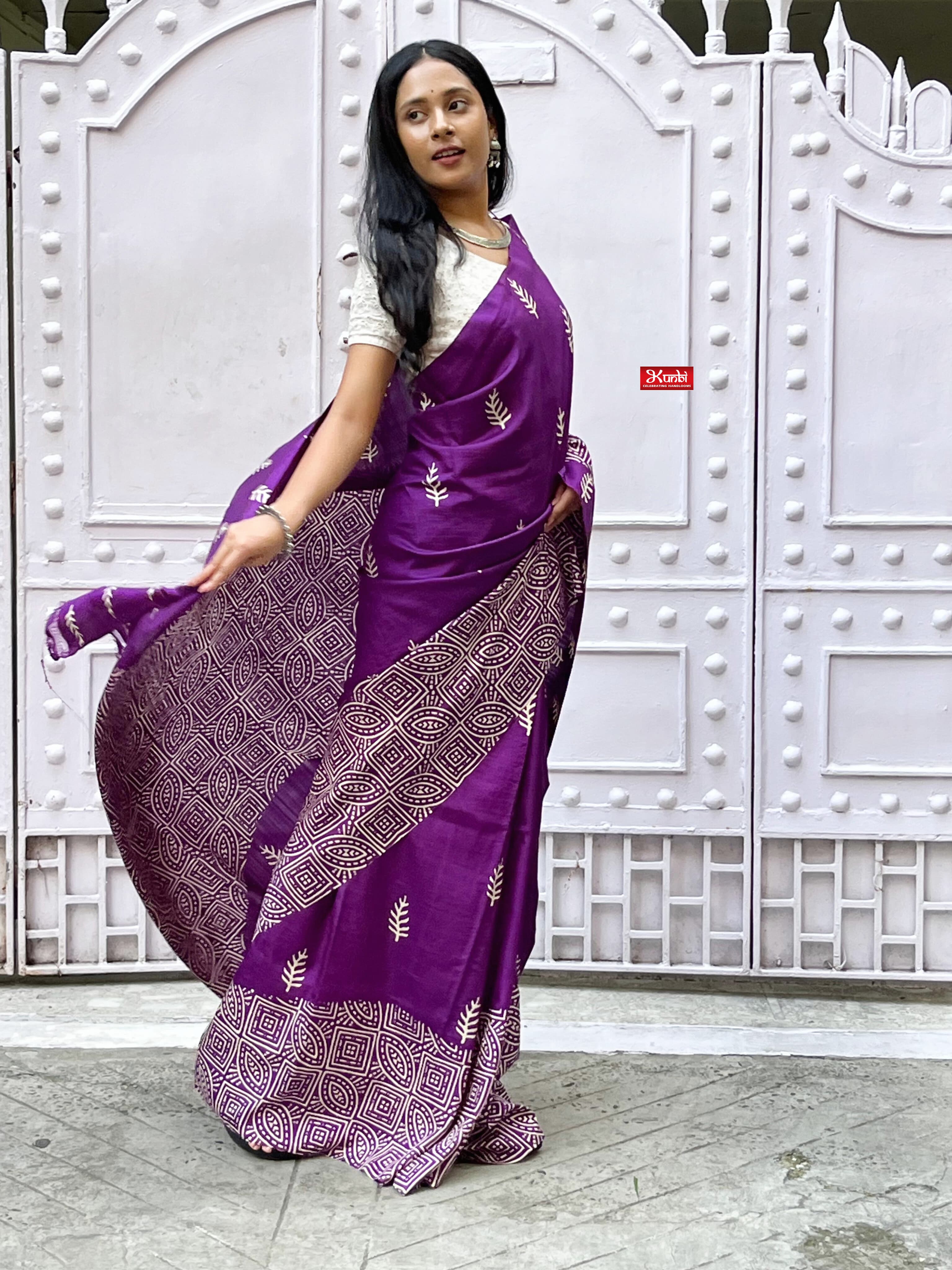 Tussar saree with block print