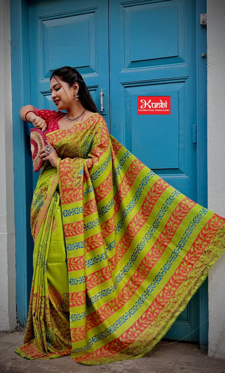 Tussar Saree in Hand Block Print